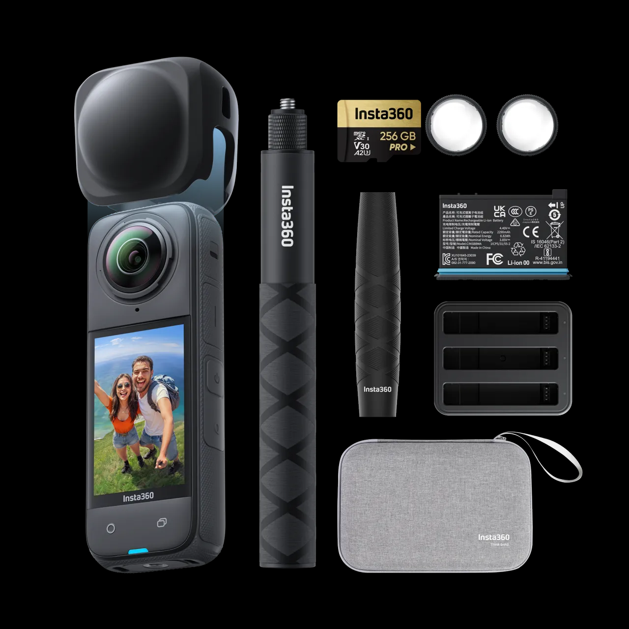 قبل نصف ساعة حزمة X5 - كاميرا أكشن مقاومة للماء 360 درجة بدقة 8K، فيديو بزاوية واسعة، عمر بطارية يصل إلى 135 دقيقة، تحرير الذكاء الاصطناعي، تثبيت الصورة، الرياضة، السفر - الكاميرا*1+بطاقة ذاكرة 256 جيجابايت